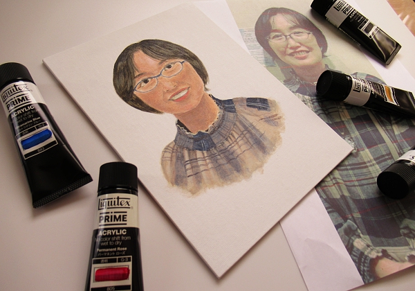こちらはアクリル絵の具で着彩しました。肌の質感を表現するのが難しかったです(・_・;)